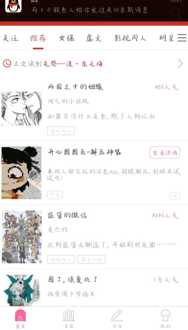作者我的作品竟然上推荐了