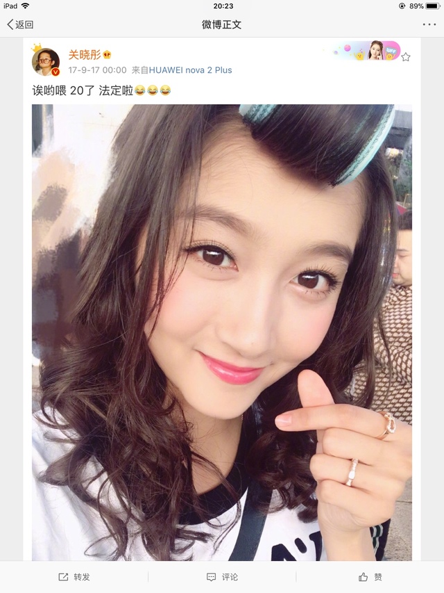 不知是有心还是无意,关晓彤在自己的微博上,强调自己“法定了”。