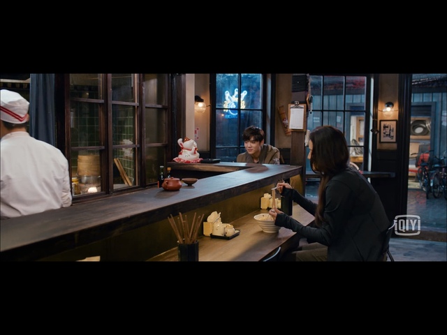 是两人在面馆里吃面🍜