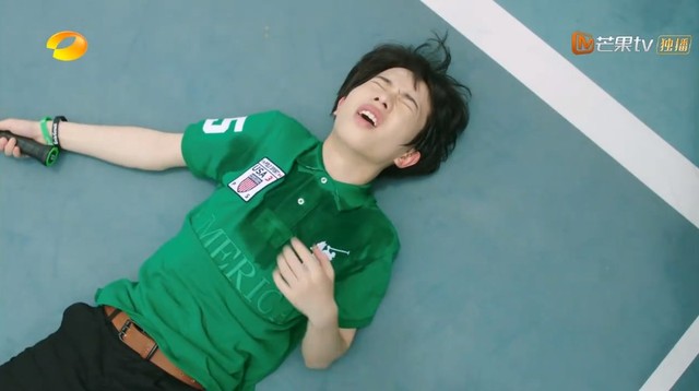 阿穆打球累得倒在地上。