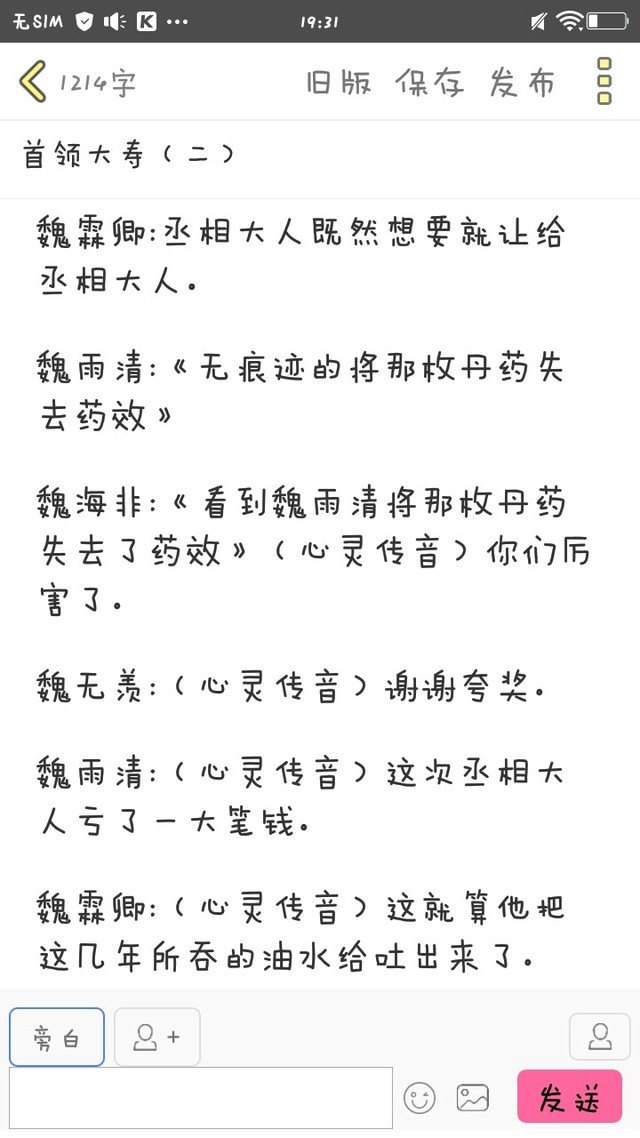 魏雨清:(心灵传音)干爹快来宫殿,某人打碎了你最爱的花瓶。