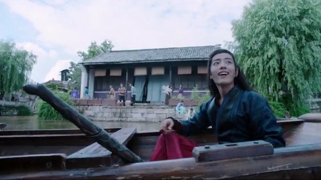彩衣镇码头上,一温柔婉约的女子在唤躺在船上睡觉的男子。