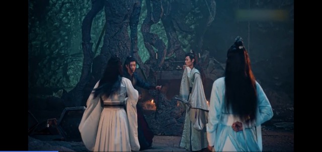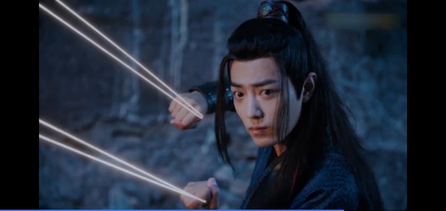 停了一会儿,舞天女突然发力,线断了,但蓝忘机也脱离了危险,可舞天女还是追着他不放,又是一下挥臂,蓝忘机来不及躲,只能硬挡