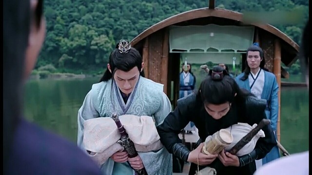 三人上了船,看向身后,向人们招着手,直到看不见