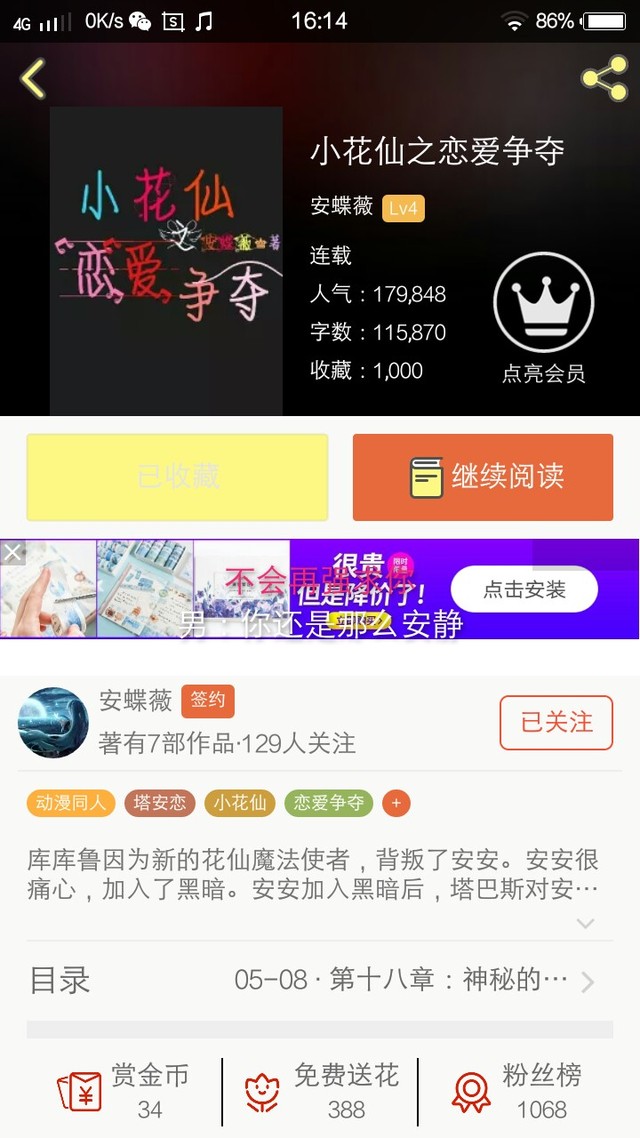 作者安蝶薇《小花仙之恋爱争夺》收藏破1000了!!