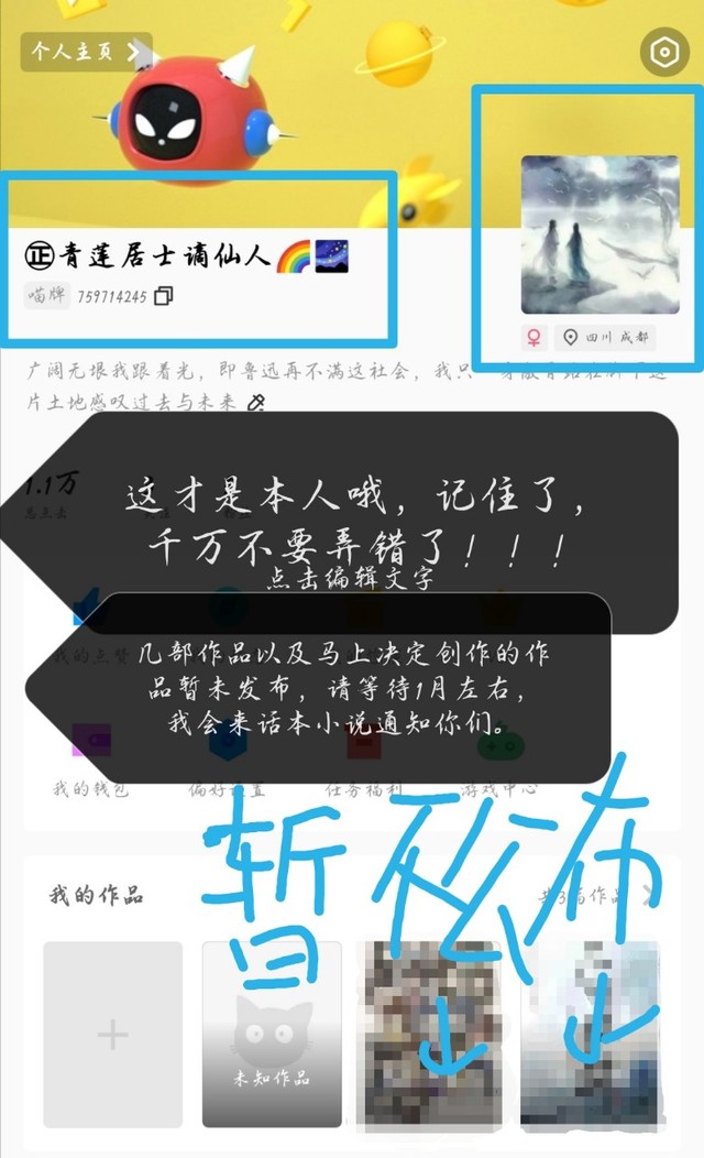 ③但是新的几部作品还在进行完整信息确认和人物设定编辑以及剧情规划最近朋友也没有时间,大概我们要整理一个月左右,把其中一部作品第1章发出来,我朋友的那部作品自然是先发,因为他已经写好几章了。