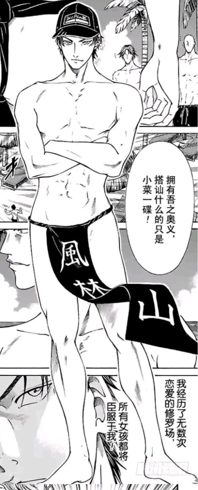种岛修二因借助平衡车泡到了妹子犯规接受惩罚,可真田弦一郎的打扮也着实是闪瞎了旁人眼球(真田弦一郎的打扮我真的形容不出来了,最后放了两幅图,自己看看吧)