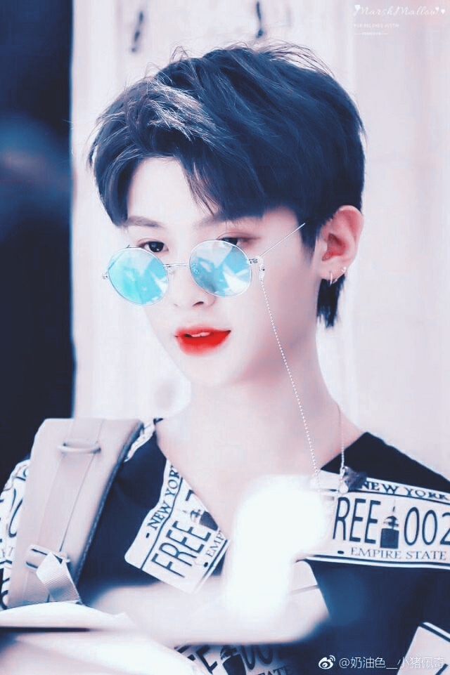大门口的时候黄明昊从裤兜里逃出一盒美瞳,那了双黑棕色的给自己带上。