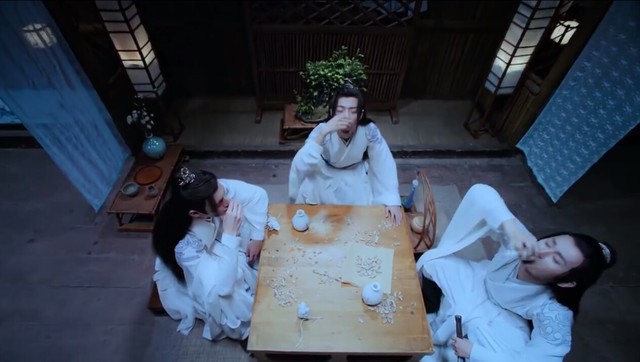 他们三个人缠在了桌子上,这时候蓝忘机打开门进来了,看到的是千尘一手天子笑,一手桃花酿在喝,他们三个喝酒,还打闹,而他最想注意到的金云笙正在看着窗户外的某一个地方,眼神中有淡淡的忧伤,但修仙之人的听力都是十分好的,金云笙的警惕性更是强,从蓝忘机踏进来的那一刻起,便回过神来了。