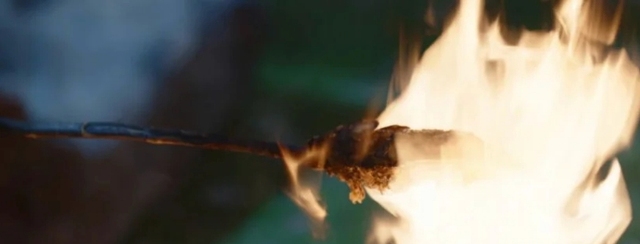 随后,两人在河畔找了一处静谧之地坐下。叶鼎之手法娴熟地将捕获的鱼串好,置于火堆之上慢慢炙烤。火焰轻舔着鱼身,散发出阵阵诱人的香气。