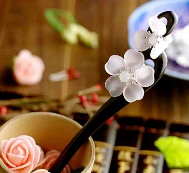 男子温柔的抚去女子脸颊上的桃花,一双炙热的眸子正好对上女子含羞的眼神