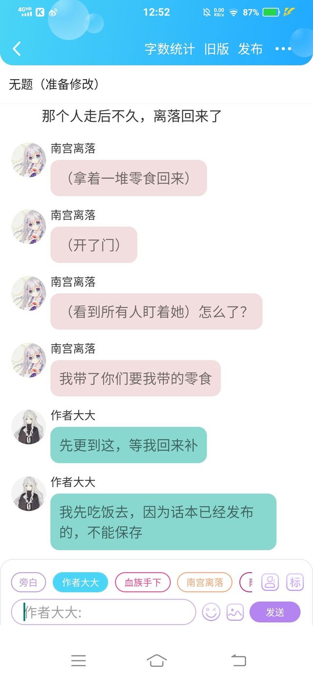 作者大大我先吃饭去,因为话本已经发布的,不能保存