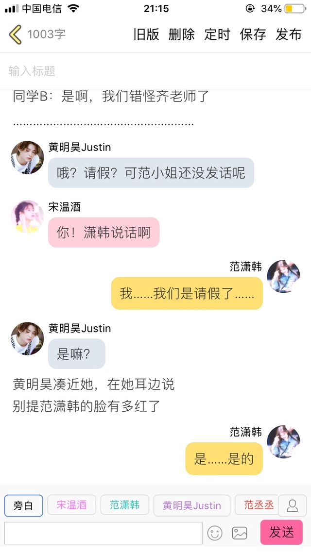 宋温酒黄明昊!我和韩仔是请了假的!而且齐老师也批准了的,你别得寸进尺