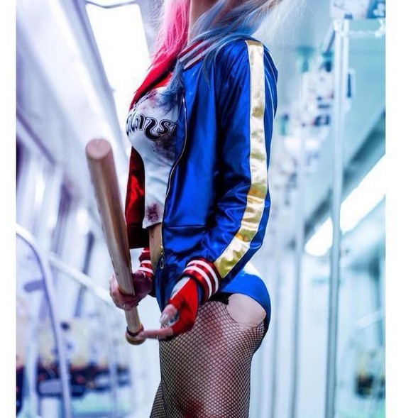 吴白.DT(身穿哈莉·奎茵标志性的紧身短T和超短热裤,紧身的小短袖勾勒出高耸的曲线,露出纤细的腰肢,超短热裤包裹着美妙的翘臀。修长的双腿加上美妙的身段简直就是一道无可忽视的风景线。)