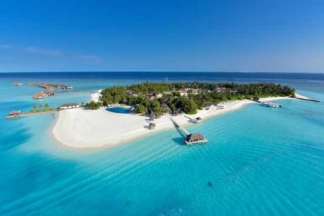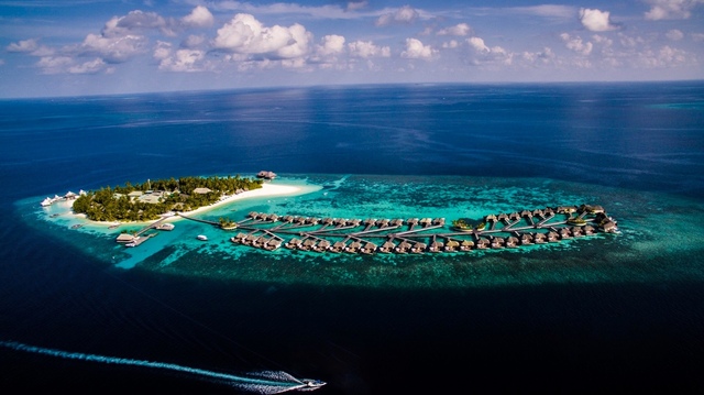 层叠的海水是深浅不一的蓝,成群的小岛屿错落有致地分布在海面上,星罗棋布,从天上向下俯瞰,让人想到一句诗:“大珠小珠落玉盘。”