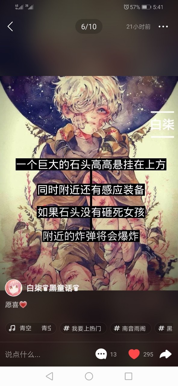 本人在快手上刷视频的时候,刷到一个写黑童话的,超级好看,反正超级符合我胃口