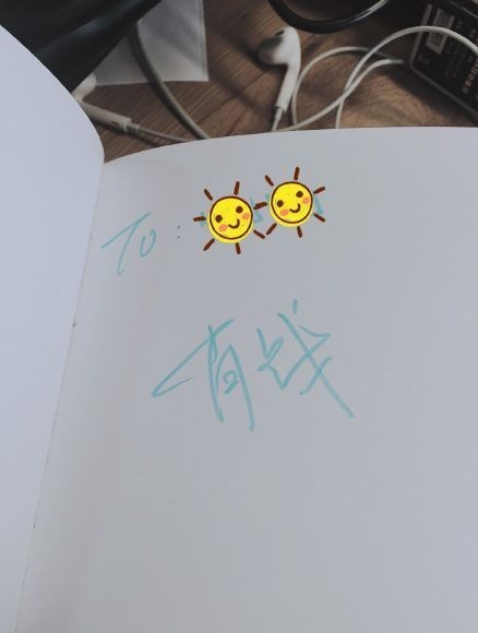 上面写着啊啊啊,敲开心,今天得到有钱哥哥的签名,😃😃,还附上了签名照