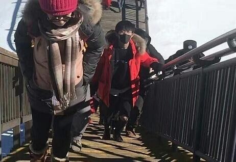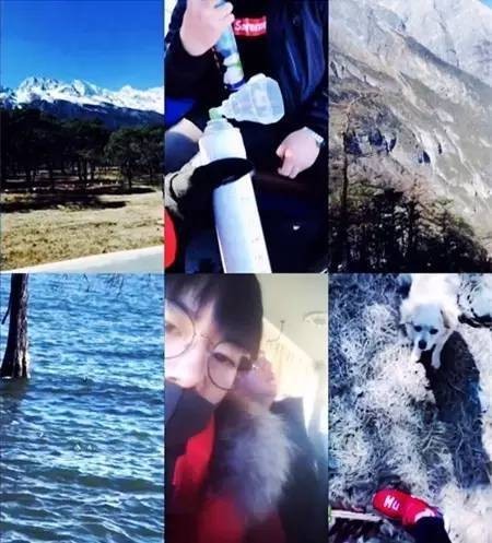 两个人来到了玉龙雪山,两个人都吸了好几瓶氧气瓶,还拍了风景照