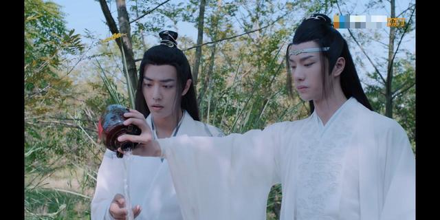 接着无羡将酒拿给蓝湛,却被蓝湛不领情的倒了……