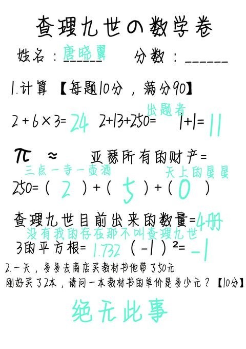 作者今天是dodo冒险队,唐晓翼,亚瑟的数学试卷