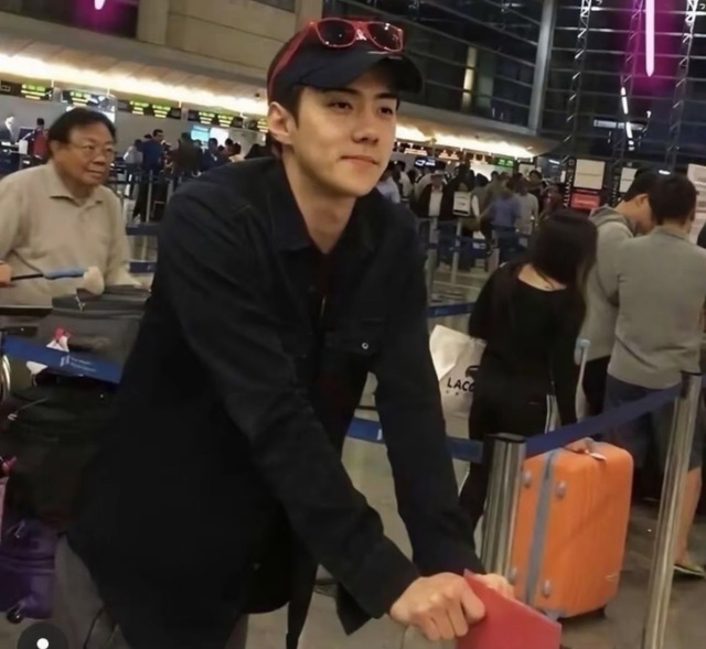 吴世勋熟练地接过行李,一脸无奈地笑着。