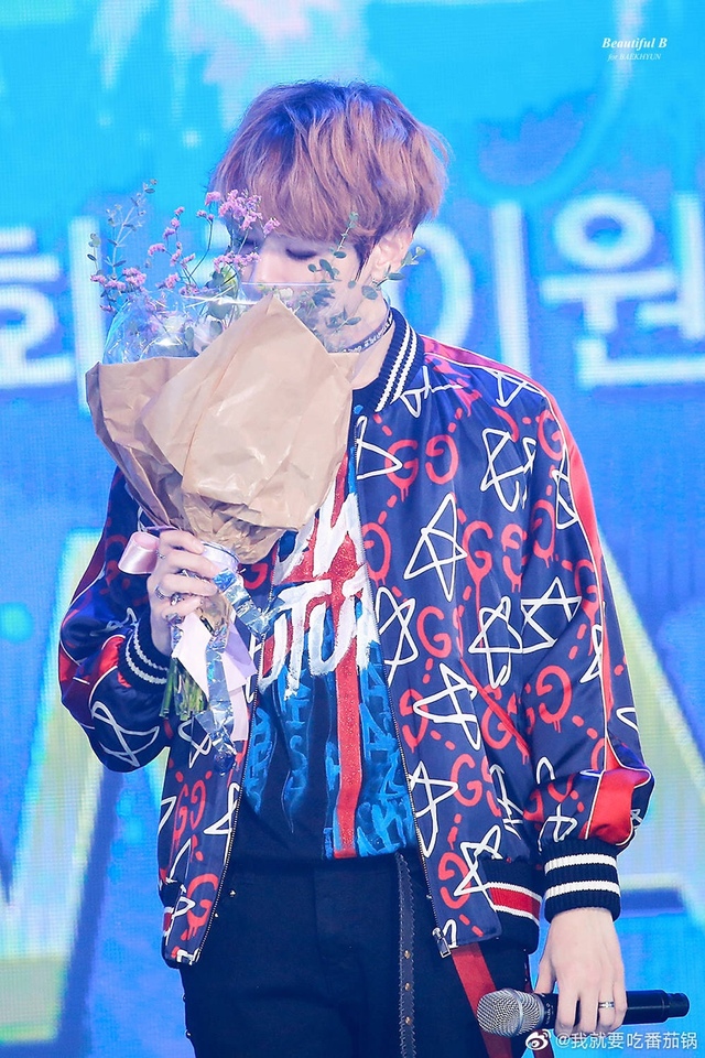 边伯贤紧张的站在门口,刚从片场赶回来,头顶还带着一顶鸭舌帽,手里握着花,半握着拳在嘴前咳了咳,然后按了下门铃,一秒、两秒、三秒,像是半个世纪那么漫长,突然,门“卡擦”的一声被打开,看着站在眼前微微喘气的人儿,在看到她穿的鹅黄色的睡裙时,笑了,然后一步一步的走近