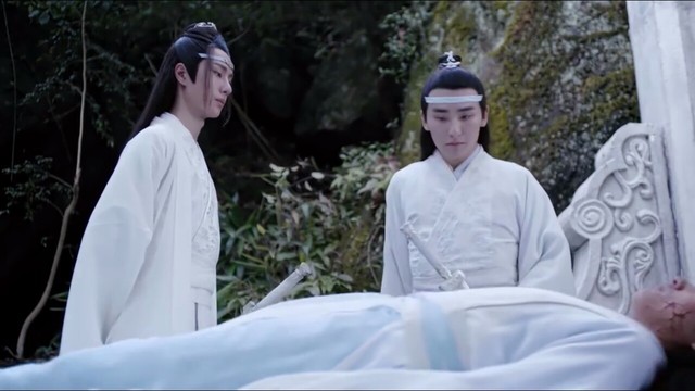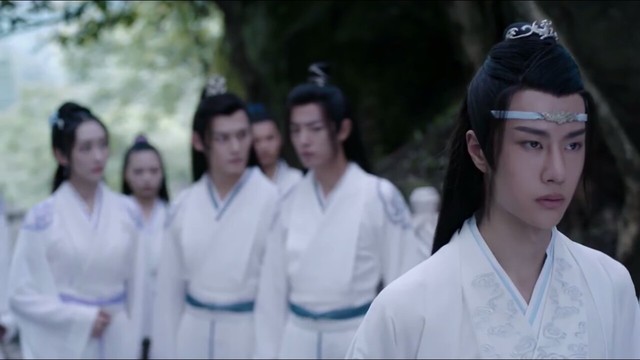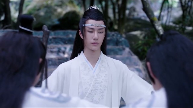 就在这时候,穿着蓝氏服饰一身白,带条抹额,背着把银色的剑。长得俊俏的男子从后头走了过来