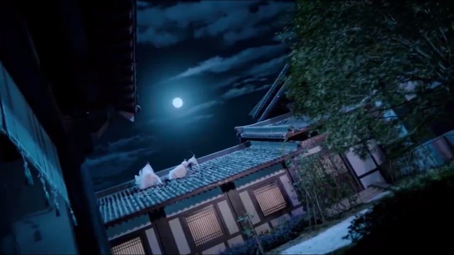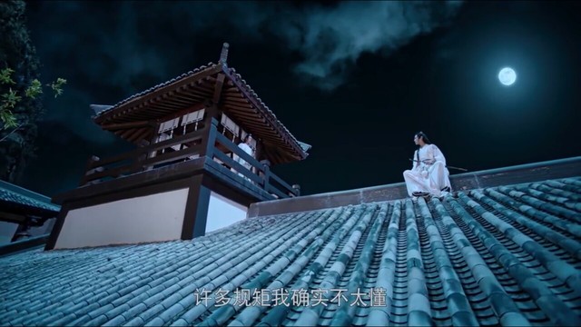 蓝影忆路过听见了这细微的动静,望了望四周没人,又看向屋檐,魏无羡正潇洒的样子坐在上面~