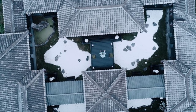空中渐渐下起了雪……