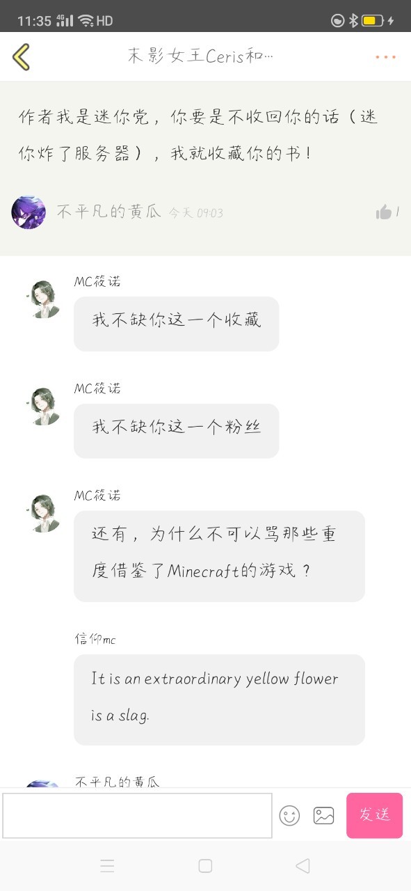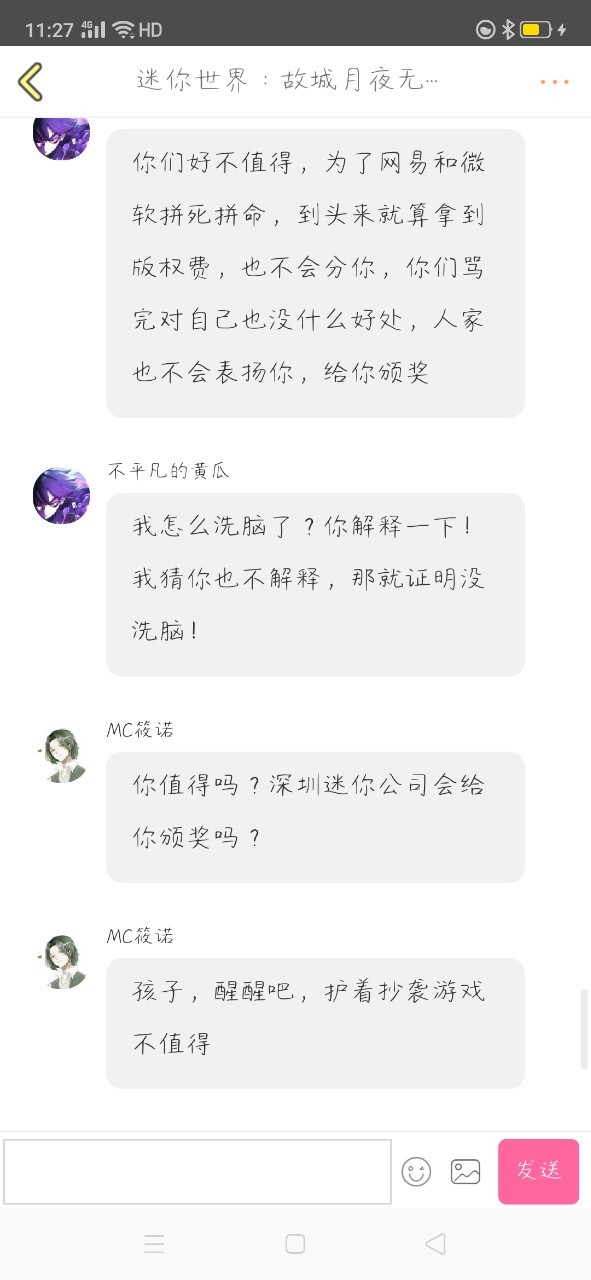 凌宇去跟客服说,Minectaft抄袭MN呗