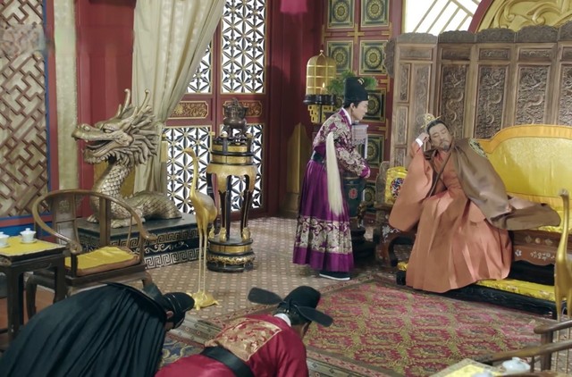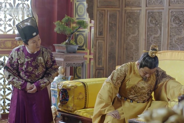 皇上寝殿外,一堆大臣在等着见皇上,众人都议论纷纷,皇上到底因何而生病。终于,李芳从殿李走出来,说皇上要召见各位大臣。