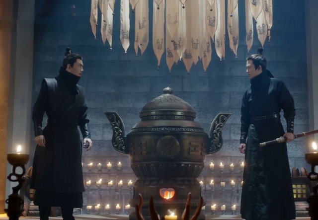 密室里,陆绎穿上夜行衣,就进去打探,无意中触动机关,打开一个密室。可是里面又出来一个黑衣人,和陆绎打了起来,陆绎一看招式,发现是丐叔,就拉下自己的黑面,丐叔一看是陆绎,也就放下心来。