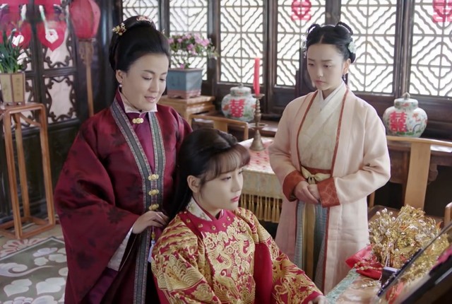 很快,便到了淳于敏大婚。淳于夫人为女儿梳头。