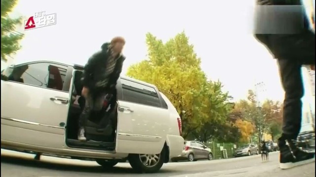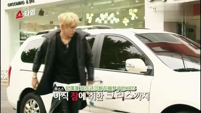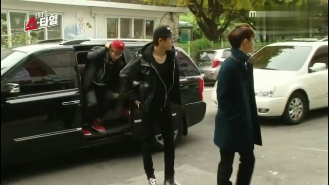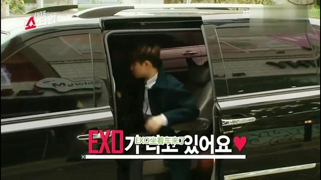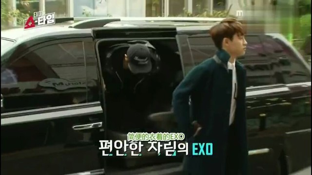 EXO一一下车进入房间。