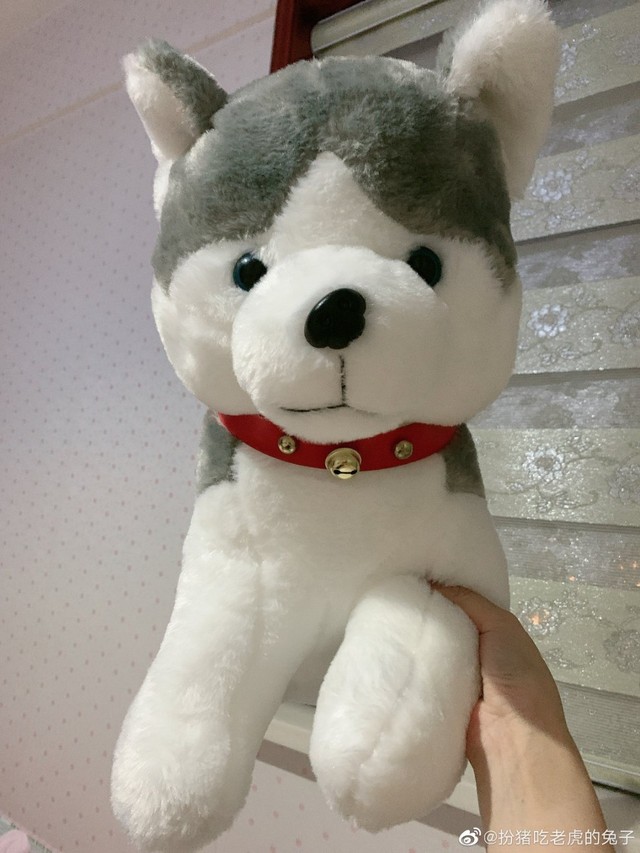 她抱着那只哈士奇玩偶撒不开手
