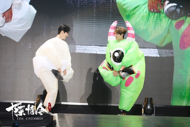 之后,因为还有别的游戏环节,所以他们又走下台去换了一身舒适一点的衣服。
