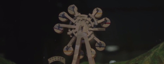 她摆弄着桌子上的积木块,尝试把摩天轮拼凑验证。
