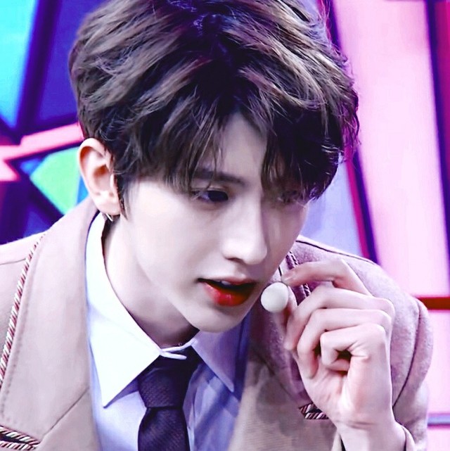 化妆师在顾茗酒脸上弄了一会就去弄头发了,蔡徐坤悄咪咪的走过来望着镜子里的顾茗酒。