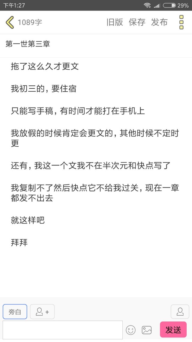 为什么我的第三章发不出去