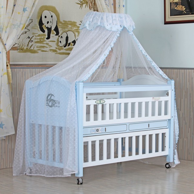 汪慕逸两只小手扒拉这小床咿呀咿呀乱说一气