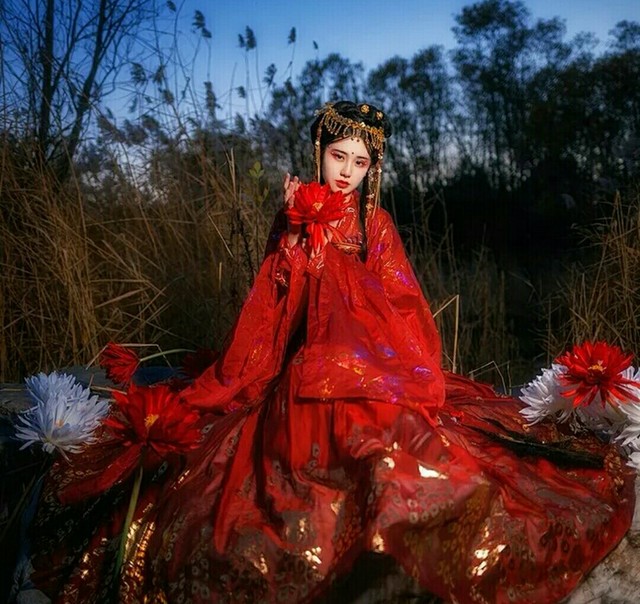寒若曦身穿红色衣裙,带着皇冠