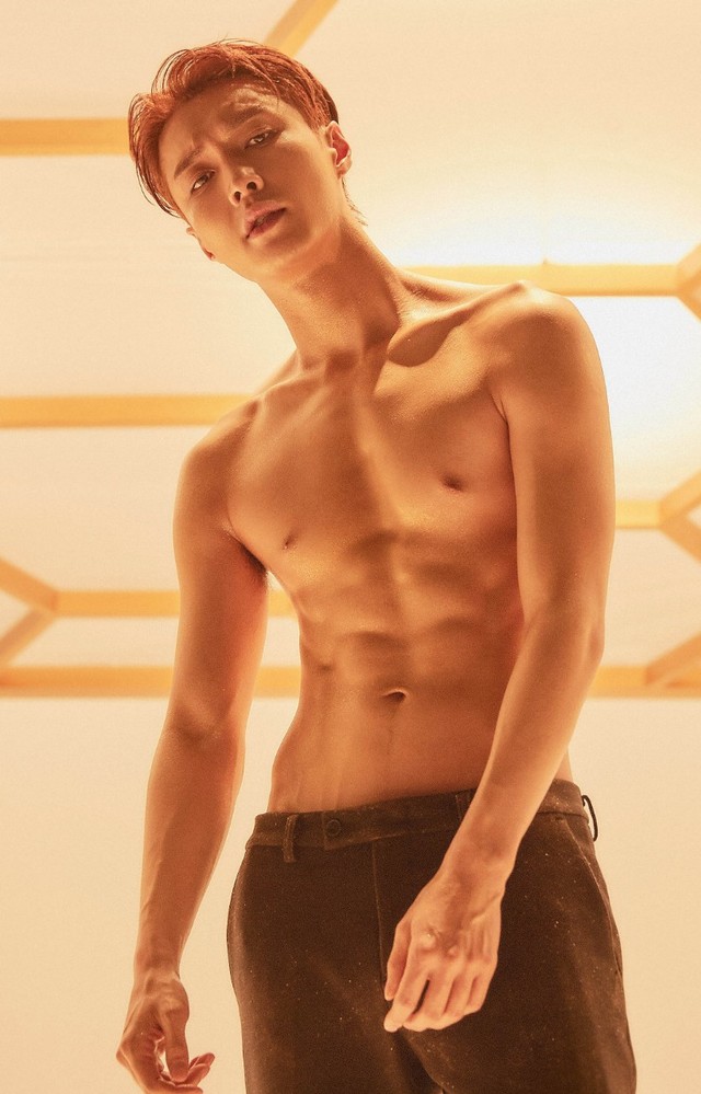 白皙的皮肤,八块腹肌,几滴晶莹的水珠正顺着人鱼线往更深处滑去……