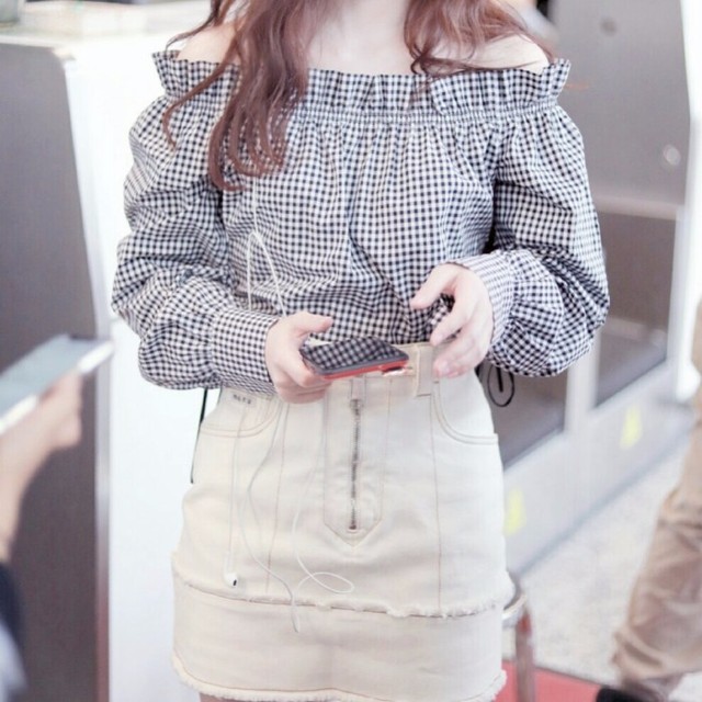 当何洛洛看到穿着黑白点长袖露肩上衣和卡其色短裙的江渝一时,眼里闪过一丝惊艳.
