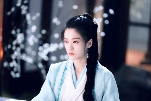 某剧组里,她身穿一件蓝色古装服