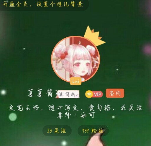 可爱的作者·萋萋酱“我需要一波关注啊,还差61个粉,就要破千了,粉丝破千加更。”