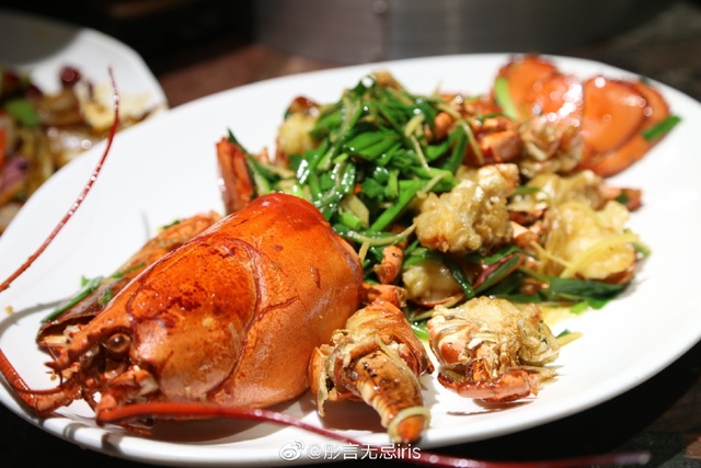 嘟嘟很绅士,一只帮我剥虾,而且很是熟练。一直夹给我,手上还有我要剥的虾没剥完~我只能用嘴直接接着他递过来的虾~