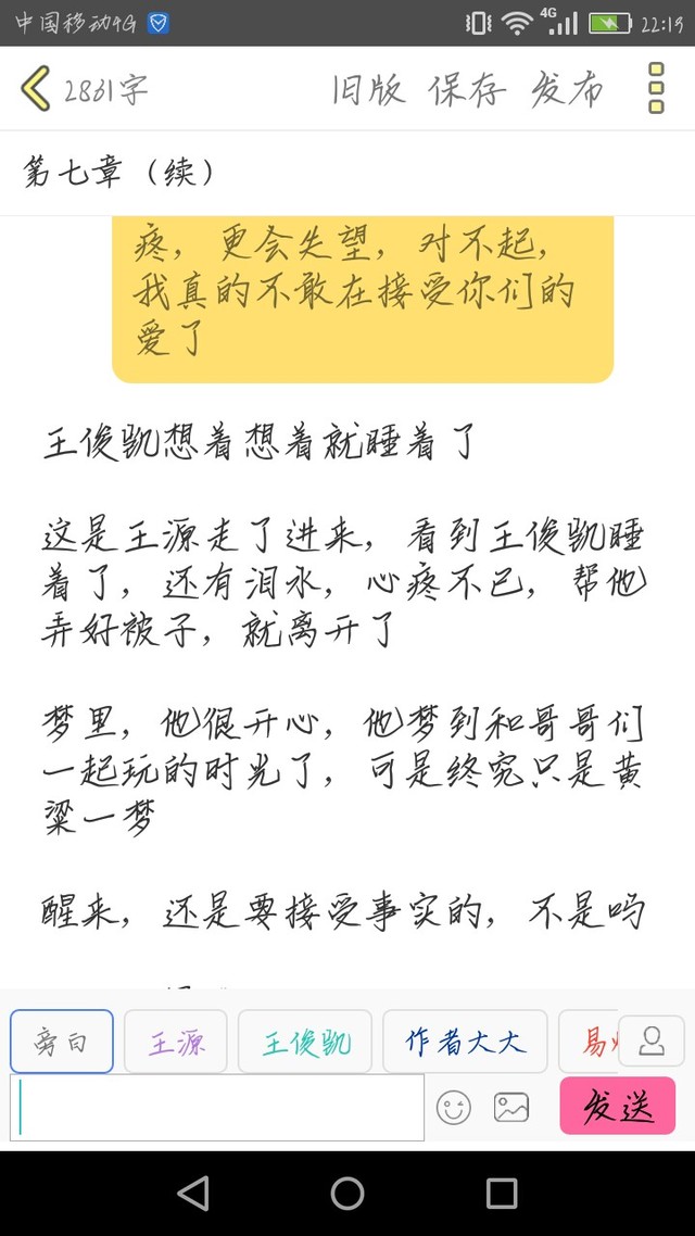 王俊凯呜呜呜,哥哥,又给你们添麻烦,让你们担心了吧,可是我不明白,为什么你们都说了不要我了,为什么又救我,为什么有把我从死神手里拉回来,我真的,真的不敢再享受你们的爱了,我怕这些都是假的,我怕还会像现在这样,我不敢再期望什么,期望越高,失望越大,我只求你们把我留下,像以前那样多好啊,你们会打我,会骂我,但我已经习惯了那样的生活,我受伤了会自己舔伤口,让它慢慢愈合,然后,你们突然对我好了起来,那几天,我过得就像梦一样,我不敢相信,后来,我适应了,我很开心,我不再是孤身一人了,可是,你们为什么要假装对我好啊!演给谁看啊!我不是玩具,不是你们想扔就扔,想捡回来就捡回来的,我也是人,我并没有你们想象的那么坚强,那一切都是我的伪装罢了,我也会累,也知道疼,更会失望,对不起,我真的不敢在接受你们的爱了
