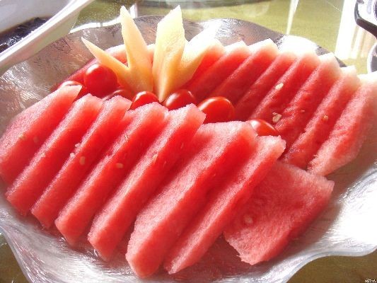 现在正是吃西瓜的季节,酒店服务员刚送上来的西瓜,童希随手拍了几张去发微博了。