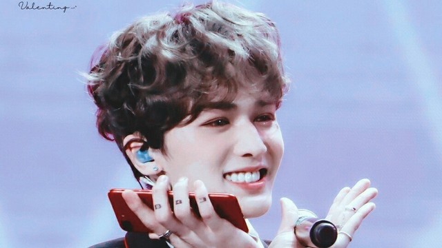 朱正廷笑得灿烂,露出一口白白的牙齿,配上他那一头的羊毛卷居然还有点像年下男,可爱得让人想要伸手去摸摸他的头。
