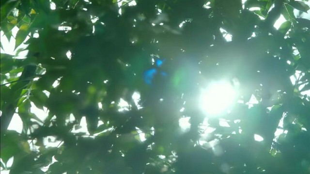 初晨,阳光透过树叶撒下一道光晕。